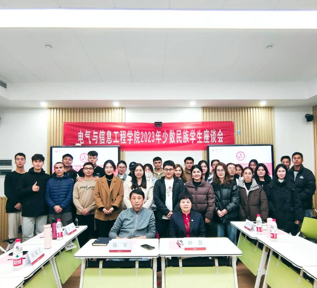 学工部田慧老师、艾合塔木老师、电气院陈军书记,各年级辅导员及民族同学参加了座谈会。会议由电气院本科23级学生阿不来提主持。