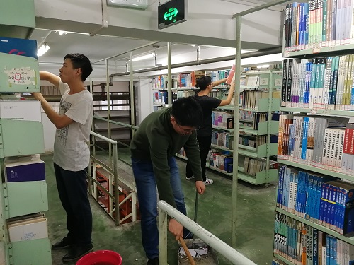图书馆里人流量较大、开放时间内要求安静,因而图书馆工作人员都是在开馆前或者闭馆后打扫卫生,早起晚归,再加上工作量大,十分辛苦。为了减轻图书馆工作人员们的劳动量,同时也让同学们拥有一个良好的学习环境,10月24日下午,在团支书聂珠卉同学的组织下,电气工程及其自动化1604班开展了图书馆大清扫志愿服务活动。