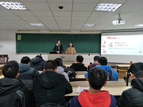 第三部分为总结环节。在班级建设部分,各个班委相继汇报了自己本学期的工作,让同学们充分体会到班级建设需要每一个人参与到其中来;在学风建设部分,课代表将老师和助教的话转告给同学们,并分享自己的学习心得,给同学们树立良好榜样;在寝室建设部分,寝室长汇报了本学期寝室的卫生情况和寝室氛围情况,增进了同学们的互相了解,其中女寝319寝室长王紫云发言中提到,和谐友好是他们的标配,爱好学习、相互探讨是他们的本能!最后,徐李佳总结道:班级是一个整体,需要每个人互相理解,互相配合,互相帮助。