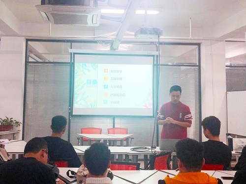 会议的第一阶段是成绩分析环节,学习委员刘宏源为大家分析了四门必修课程的成绩情况:电子1803班上学期四门必修课程的成绩都十分优秀,但是仍然存在不足之处。他希望同学们戒骄戒躁,找出自己学习方面的不足之处。刘宏源还邀请各学科成绩优异的同学上台分享自己的学习方法,以此帮助同学们取长补短,不断完善自己。