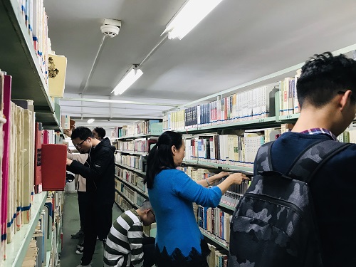 本次活动班级共计34人参加,无人缺席,由于人数较多,班级以学号为单位分成两组,在老师的指导下进行了图书的整理及杂志的收纳。七楼的同学负责协助老师将一批错乱摆放的旧书按照编号重新摆放整齐,在听完老师对工作场地的介绍及详细的操作讲解,同学们很快行动起来,一双双眼睛紧盯着图书上贴的编码,生怕看漏了数字,“138……139……140……137,这里放错了!”由于这批旧书存放的时间较久,部分编码已经模糊不清甚至脱落,给不少同学的检查带来了困难,但是大家没有丝毫的懈怠,依旧努力地辨识上面的数字信息,力求为每一本书籍找到属于它们的位置。在遇到不确定的编码顺序时,同学们则积极地寻求老师的帮助,老师也十分耐心对图书编号规则进行小科普,没过多久,同学们已基本熟悉了工作的要点,完成的速度和准确率也逐步提升,短短一个下午,原本错乱的书架变得整整齐齐,各种书本也按照顺序完成分类和摆放。另一边,三楼的同学们也在书柜前努力地检索着,他们总共分成两组,一组负责整理出2018年整套的期刊杂志并进行打包,只见他们分工工作,配合默契,负责查找的同学将找到的杂志传递给下一个同学,后续的同学依次完成顺序叠放、捆绑打包、搬运等工作,大大提升了工作效率,一个下午便完成了几十捆期刊杂志的打包。另一组则是负责“体力活”,协助老师完成书籍的搬运。任务结束后,不少同学表示,虽然过程比较辛苦,但是一想到自己减轻了老师们平时整理工作的负担,便也觉得有意义了。