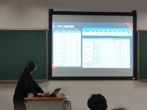 会议伊始,郑宪光简要的概括了开学以来班级的一些情况,让大家对新学期班级的建设有了一些了解。接着,各个班委依次上台发言:学习委员刘馨怡对上学习班级的成绩做了对比分析,提出了新的互助学习制度,并对大家提出了自习和四六级学习的要求。生活委员南梦涵通报了班级宿舍的过牌率,总结了班费的收支,并重新做了请假安排。宣传委员赵逸帅也计划申请一个班级的网盘来方便同学们分享资料、记录班级活动。最后,团支书王胜辉向大家介绍了新的团建制度,并预告了本学期的团日活动。