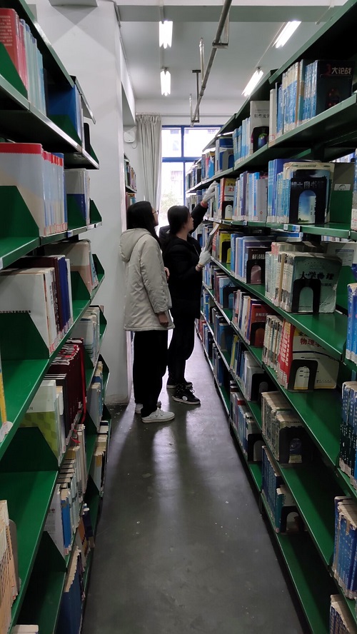 在团支书王胜辉的带领下,同学们精力充沛地来到了图书馆,图书馆依旧是充满学习氛围的图书馆,不时有学生前来自习。经过人员分配,大家前往各自工作的楼层,虽然大家有过做志愿者的经验,但本次活动与以往相比还是有了新的变化,第一是时间长度的变化,第二是出来基本的清洁工作外,还有了新的任务——书目放回,不少同学是没有这类工作的经验,但在图书工作人员的细心指导下,大家很快就了解了工作的步骤:按照索书号了进行书目的分类整理并熟悉各类书目的位置,接下来根据书本的索书号找到原位放回,或者找到相同书目,加快定位速度。了解了工作后,大家很快就将所有放还的书本放回,并再次仔仔细细地检查了一遍书摆放顺序并将书本摆放整齐。
