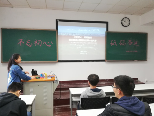 第九次代表大会精神宣讲提纲,她强调:“团支书和班级入党积极分子要发挥表率作用,积极宣传党的主张,坚决贯彻党的决定,认真担负管理团员、监督团员、凝聚团员的职责。支部团员要注重网络平台的思政学习,关注青年湖南公众号,关注共青团中央新闻,学习习近平新时代中国特色社会主义思想,增强社会责任感和使命感。”