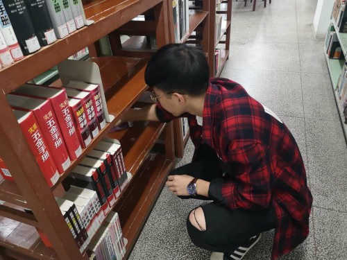 下午第一节课结束后,同学们匆匆来到了图书馆门口集合,团支书唐晓旭将全体成员分为六组,分别去一、三、四、五、六楼进行志愿活动,在每个楼层的图书管理员老师的安排之下,同学们有条不紊地开始了志愿活动,一部分同学通过书编号将刚归还的书还原到书架上,另一部分同学进行卫生工作。