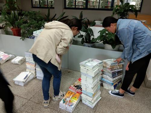 分类和搬运书籍的任务较为劳累,但同学们仍没有丝毫懈怠与抱怨,全部尽心尽力地完成任务。书籍很多,大家仔细辨认、分类,保证不出差错。一摞摞书籍被按分类整整齐齐摆在地上又装好运走,一车又一车的书被分类好推进仓库,随着大家来来回回忙碌的身影,成堆的书籍渐渐被整理完毕。