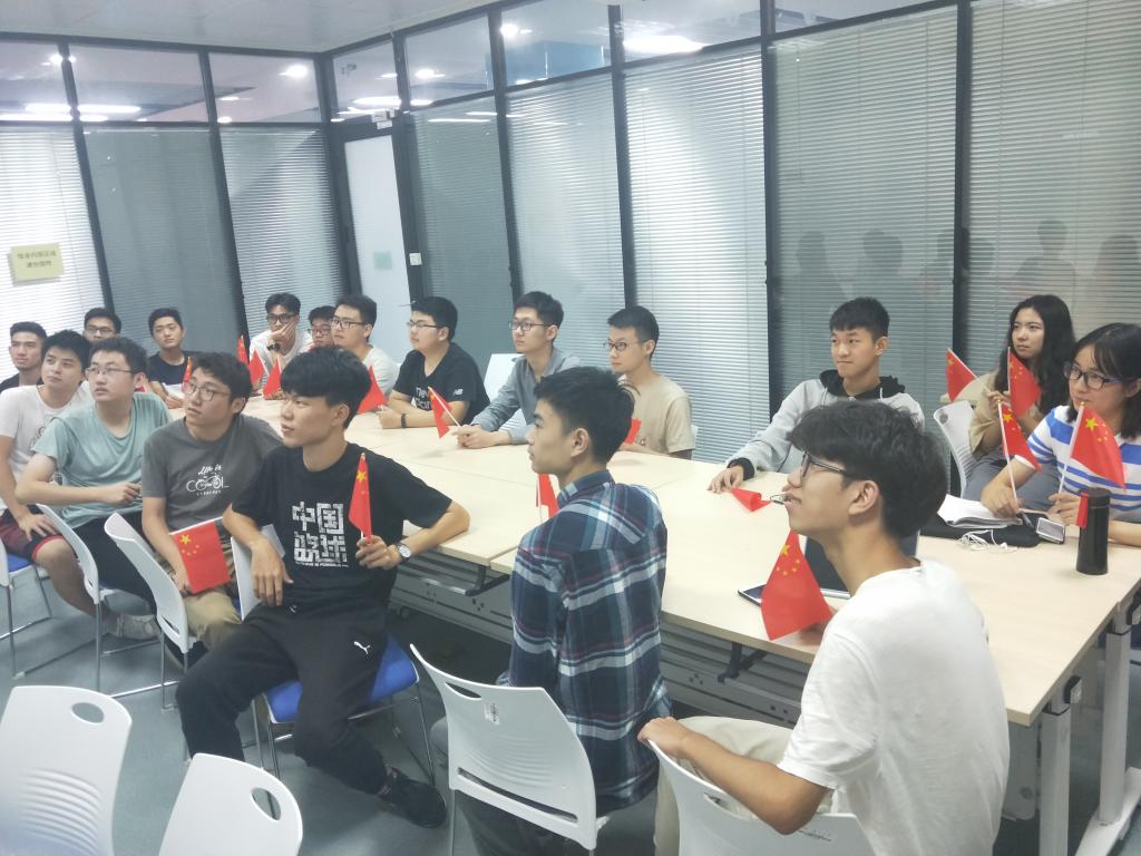 首先,王胜辉从开国大典谈起,列举了新中国成立以来的一些伟大成就,并通过一系列图片和视频,带领大家重温第一颗卫星发射、第一个原子弹爆炸、香港、澳门回归祖国、北京奥运会等重大历史事件,让大家感受到了七十年来新中国在各个领域取得的飞速进步,不断增强的综合实力让新中国傲立于世界民族之林,同学们都由衷的为祖国感到自豪。