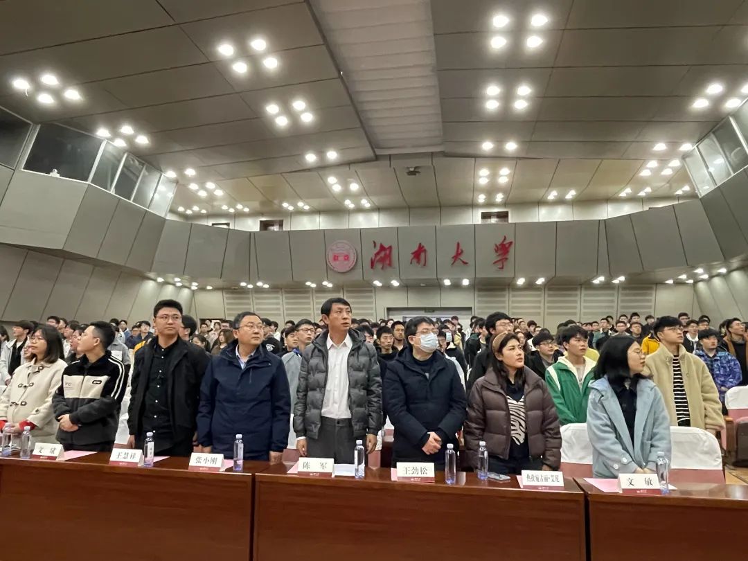 首先,全体起立奏唱国歌。
