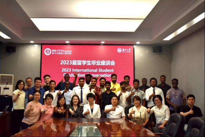 留学生中心主任谢军教授、副院长许加柱教授、教师代表、2023届毕业留学生等参加会议。
