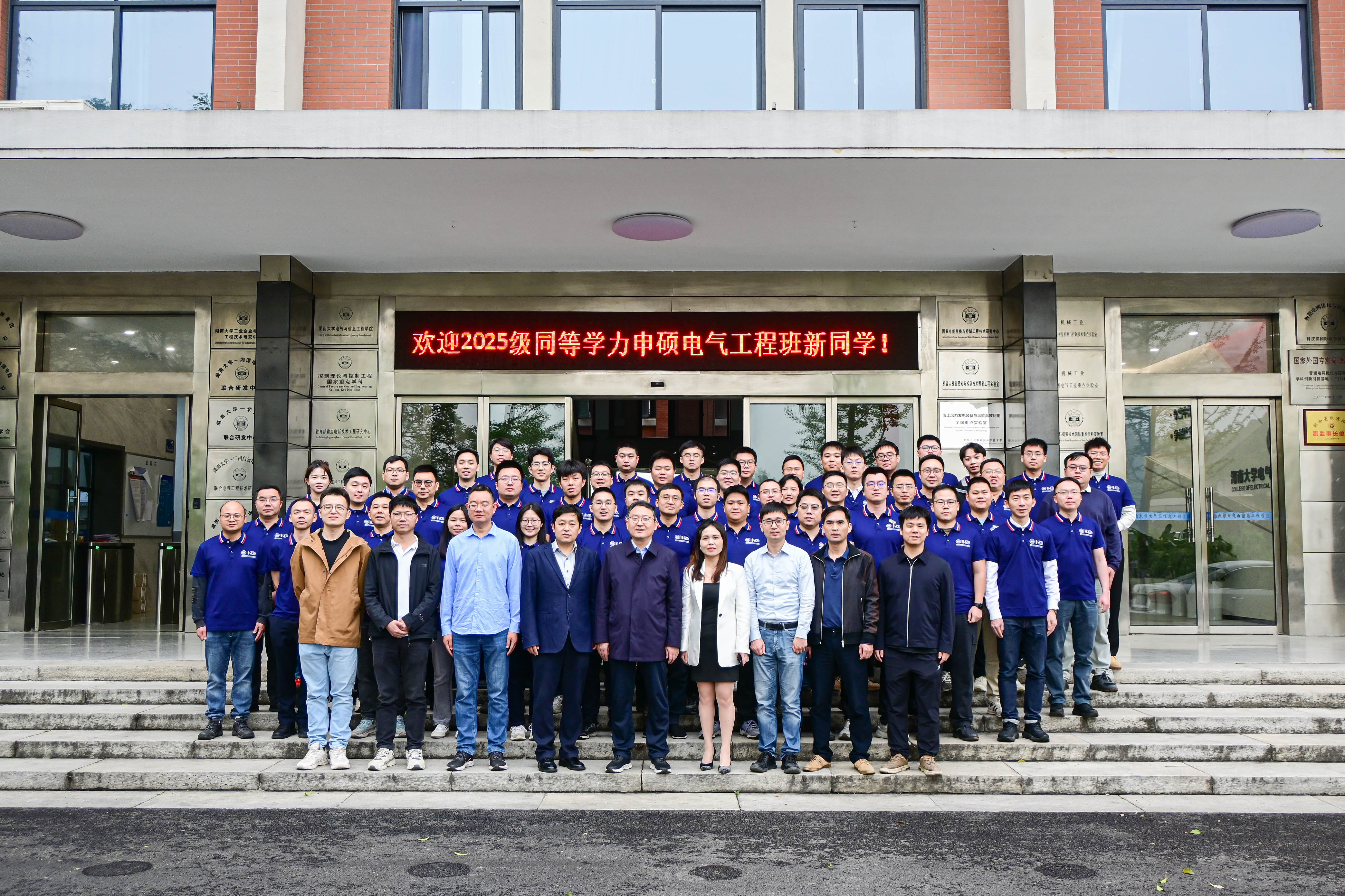 校歌,并在电气院楼前拍摄首张集体合影。据悉,为深化产教融合协同育人,学院于2024年正式启动同等学力硕士培养项目。本届电气工程专业聚焦服务能源电力行业,面向南方电网系统开展专项招生,共吸引120余名技术骨干报名。经过资格审查、专业考核等环节,最终53人成功被录取。学员专业领域涵盖智能电网、新能源并网等国家重点发展方向。学院已建立动态培养档案,后续将通过校企联合指导、科研成果转化等机制,着力培养适应新型电力系统建设的高端工程技术人才。