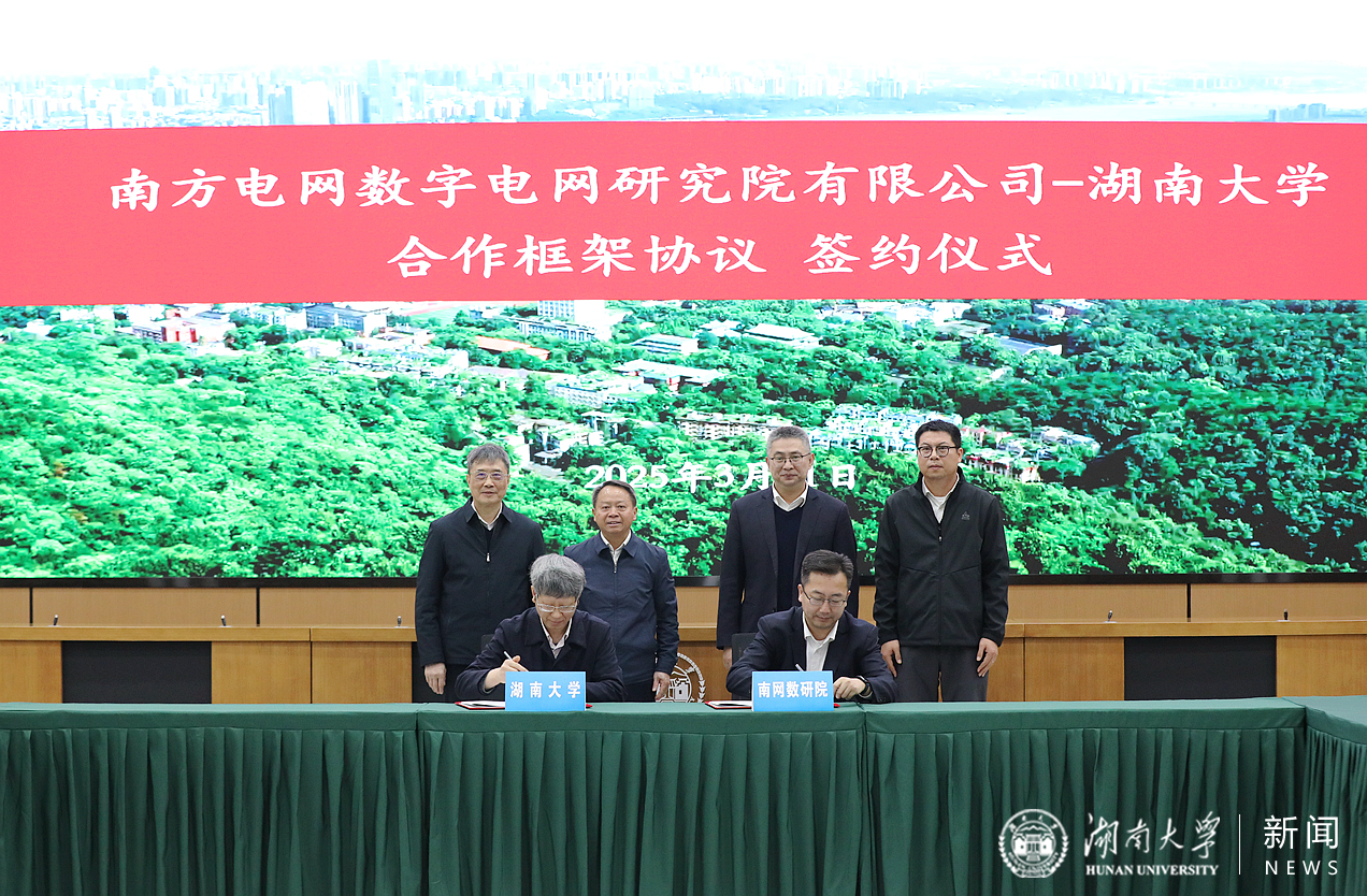 校长段献忠,中国工程院院士罗安,南网数研院总经理、党委副书记刘育权,南网数研院战略科技部副总经理于力出席并见证签约,副校长蒋健晖与南网数研院副总经理、党委委员索智鑫代表双方签署合作协议,蒋健晖主持签约仪式。