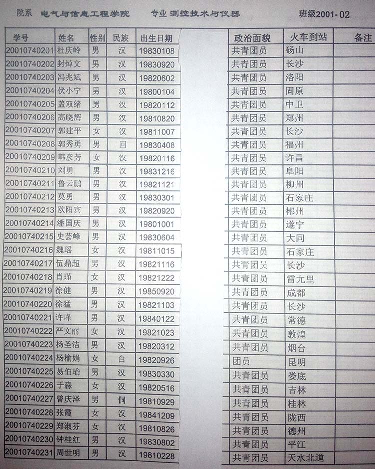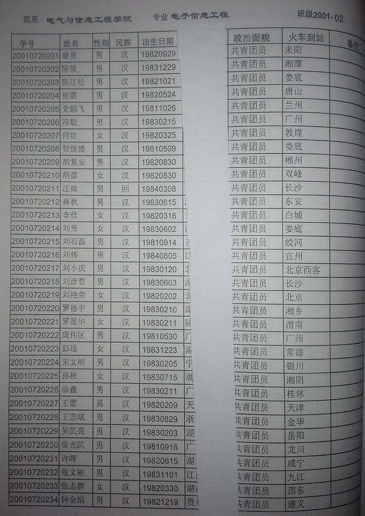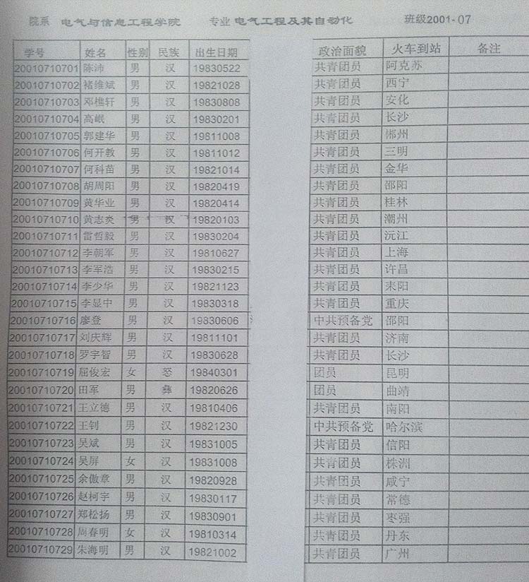 本科生校友名单 (1921—1925 湖南公立 工业专门学校)