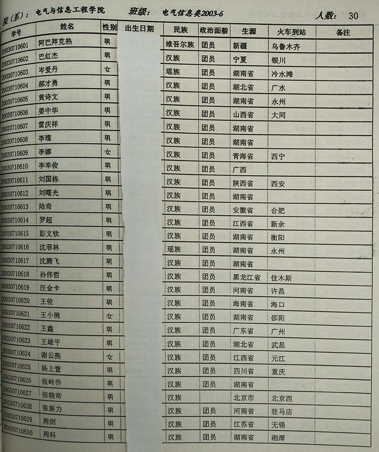 本科生校友名单 (1921—1925 湖南公立 工业专门学校)